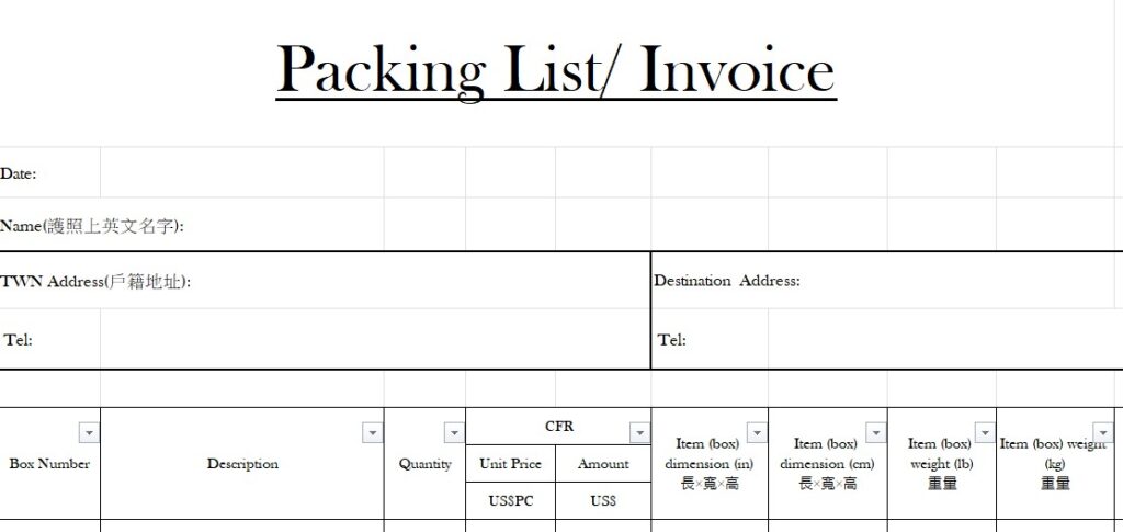 以PACKING LIST 填寫方式很簡單~有疑問請點我~